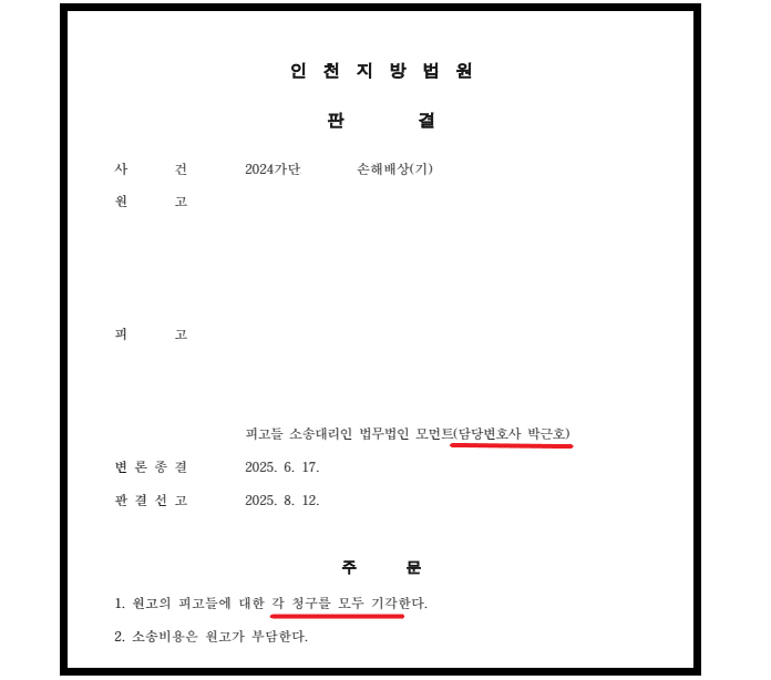 나아가 의뢰인에게 실질적인 경제적 이익이 귀속되지 않았다는 이유로, 부당이득반환의무 역시 성립하지 않는다고 판단하시어 원고의 청구를 전부 기각하였고, 의뢰인은 사기 피해자로서 법적 책임에서 벗어나 불합리한 금전적 부담으로부터 자유로워질 수 있었습니다.