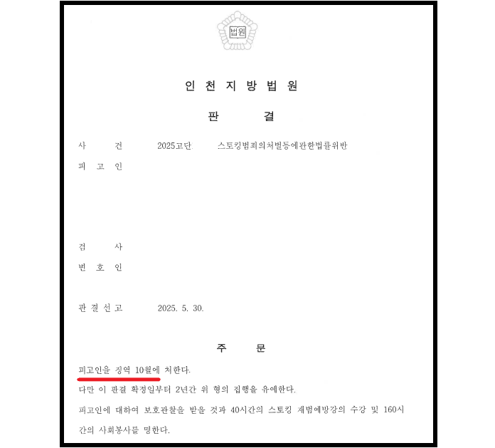 스토킹 고소대리 유죄판결 성공사례