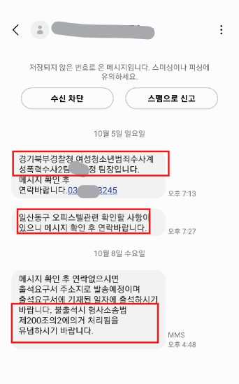 → ‘경기북부경찰청 성폭력수사팀’ 명의로 되어 있는지, 담당 수사관 이름과 연락처가 기재되어 있는지 확인합니다.조사 일시와 장소