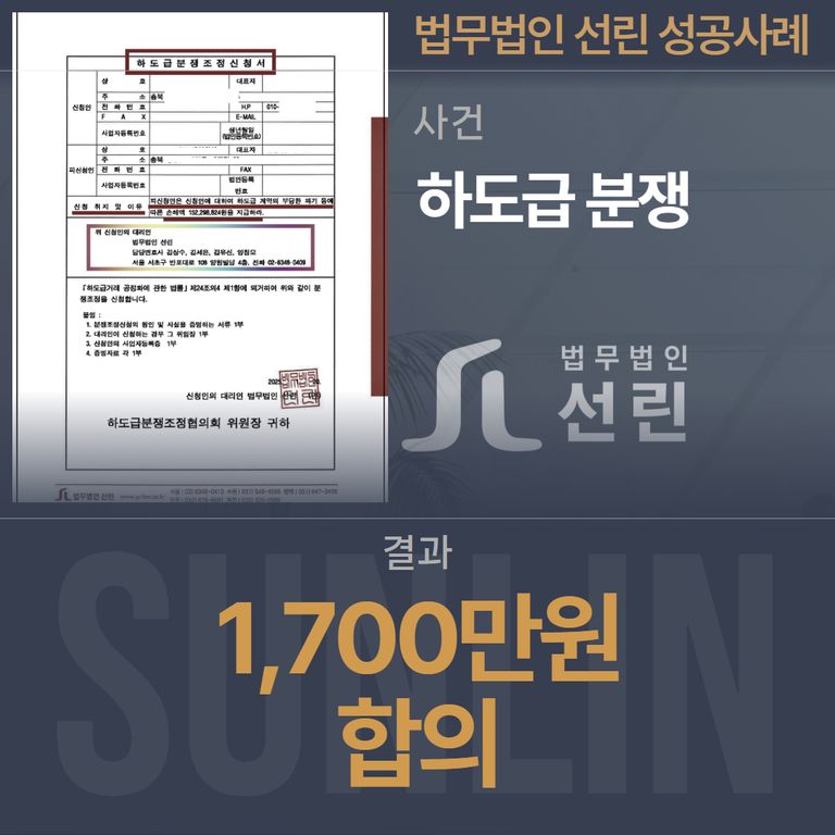 → 결과: 공정거래조정원 조정 성립, 1,700만 원 합의금 지급