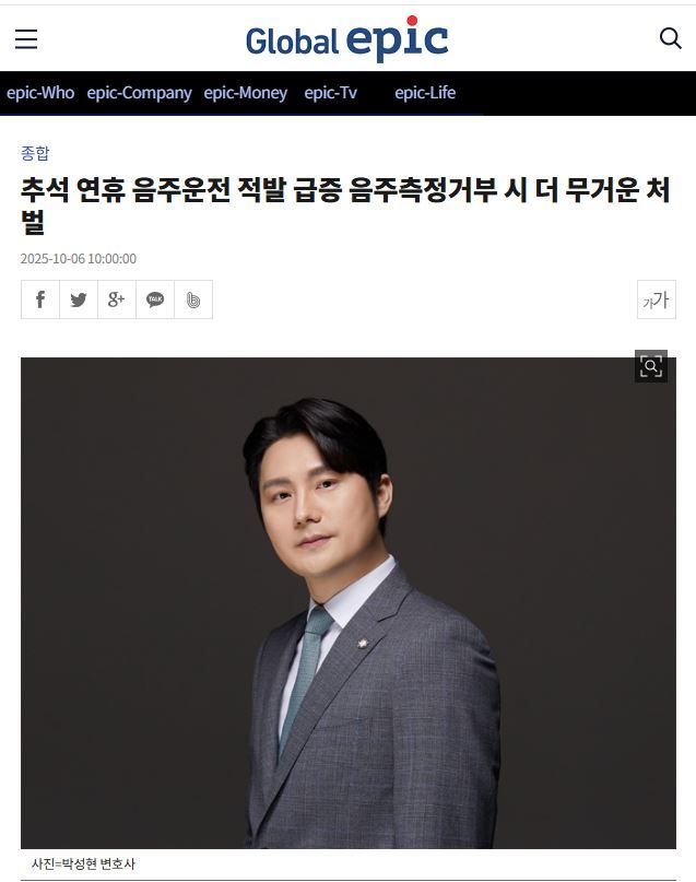 [글로벌에픽 이수환 CP] 최근 유명 유튜버가 과거 두 차례의 음주운전 전과에 이어 음주측정 거부 혐의로 경찰에 붙잡히면서, 음주측정거부만으로도 처벌이 가능한지에 대한 관심이 높아지고 있다.