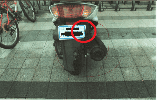 현장 사진은 번호판이 손상되었는지 여부가 명확하지 않을 정도로 매우 미미하게 번호판이 안쪽으로 휘어졌는데,