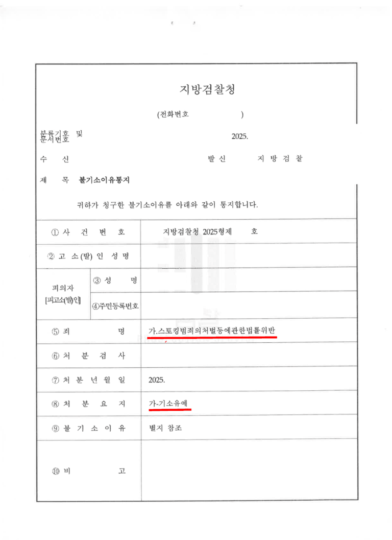 따라서 피의자는 스토킹범죄로 재판에 넘겨져 100만 원 이상의 벌금형만 선고받더라도 공무원직을 상실하게 되는, 매우 중대한 위험에 처해 있었습니다. 이 때문에 약식기소에 따른 벌금형조차 피해야 했으며, 불기소 처분, 특히 '기소유예'를 받는 것이 절대적으로 중요한 목표였습니다. '기소유예'는 범죄 혐의는 인정되나 여러 정상을 참작하여 기소를 하지 않는 처분으로, 유죄판결이 아니므로 형의 선고가 없어 당연퇴직 사유에 해당하지 않습니다.