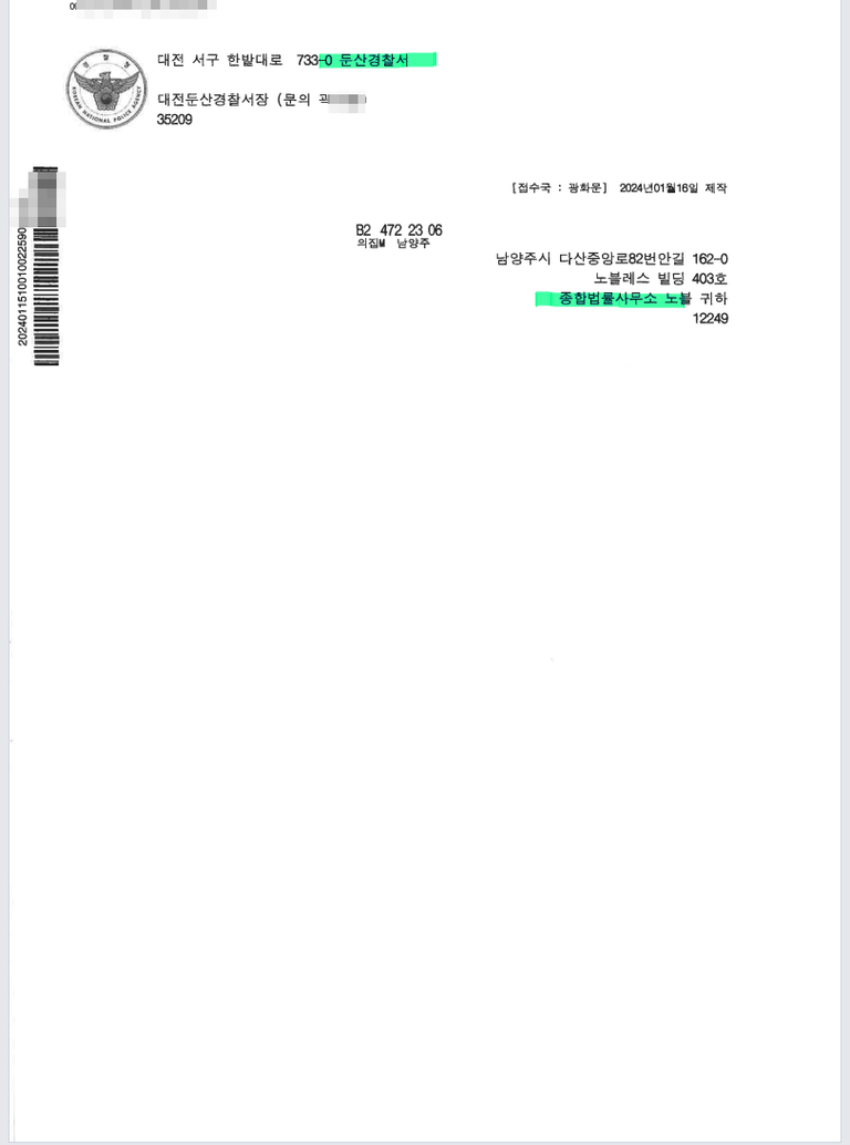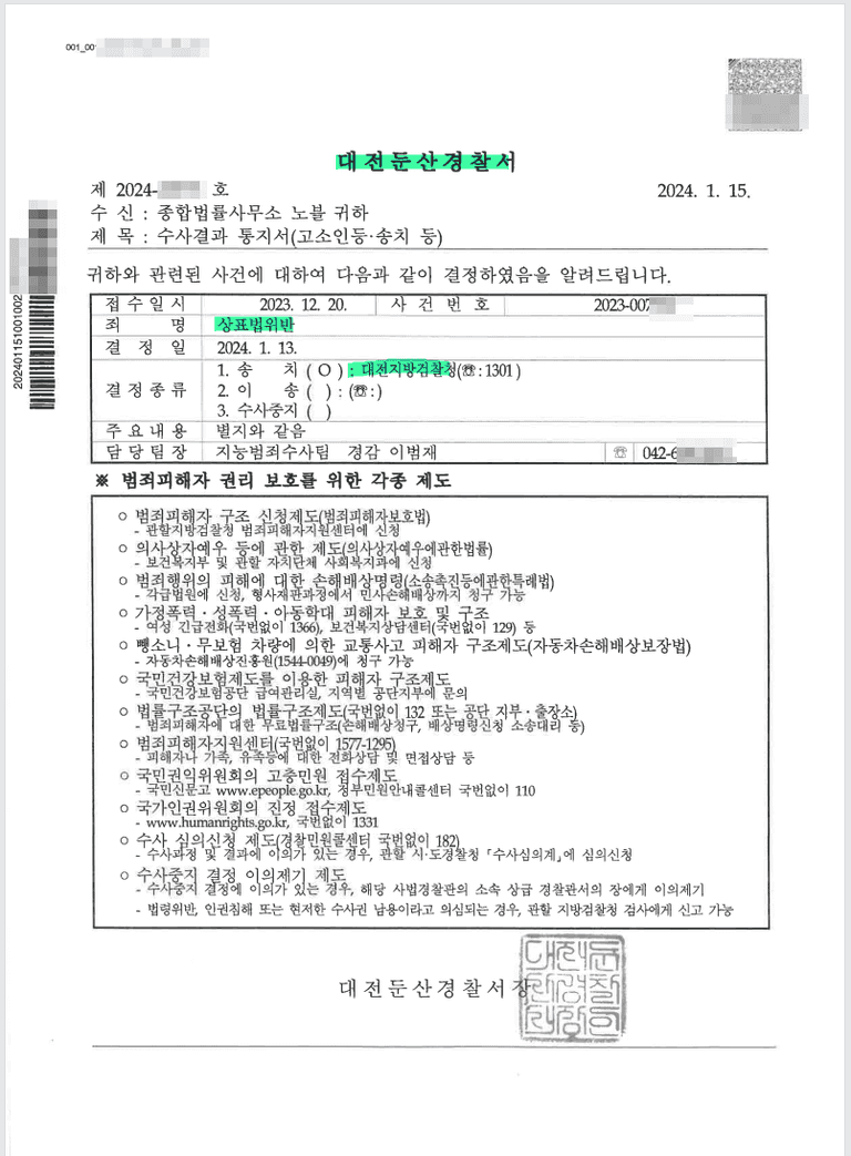 기소송치에 이른 사례 - 대전 둔산경찰서