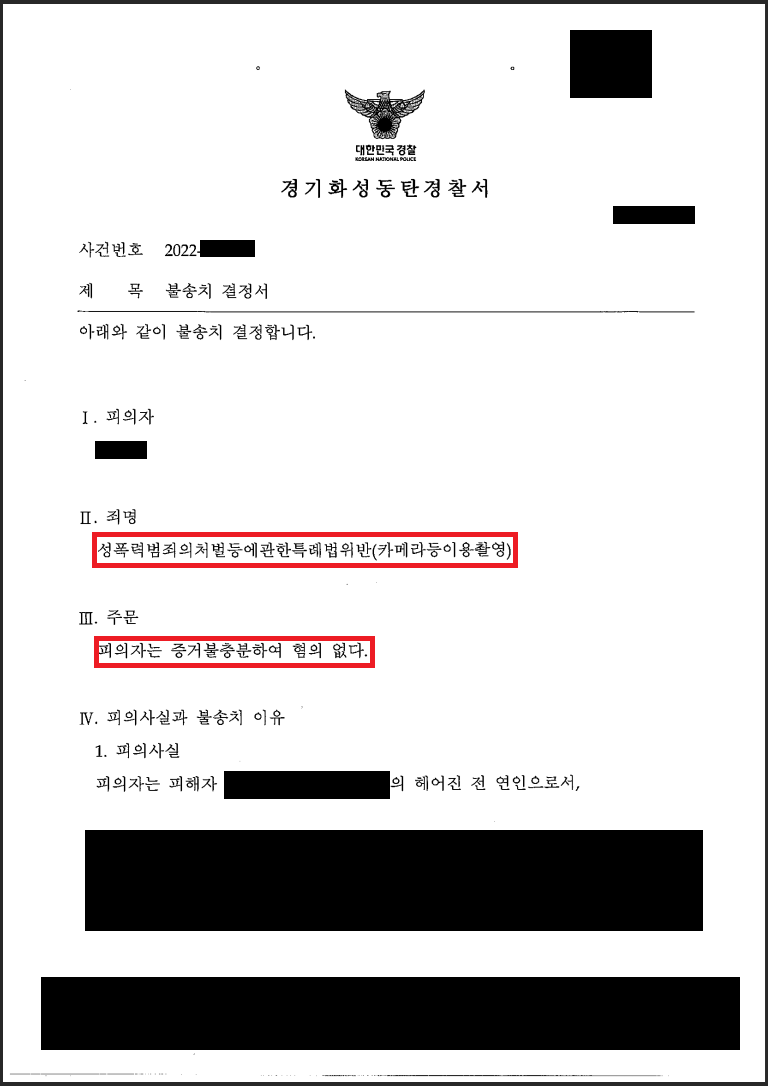 3. 수사기관의 판단 : 불송치(혐의없음)