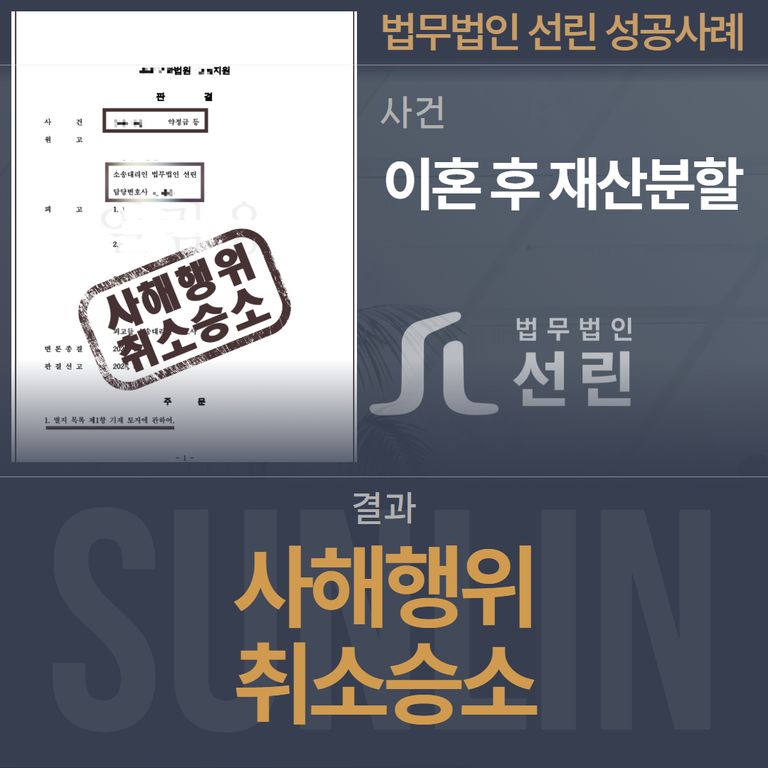 이에 A 씨는 자신의 권리를 침해당했다며 법무법인 선린을 통해 사해행위취소소송을 제기했습니다.