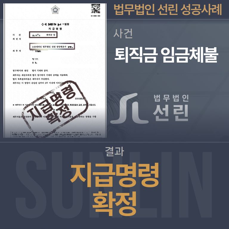 법무법인 선린은 합의서, 고용노동청 자료, 국민연금공단 내역을 근거로 신속히 지급명령을 신청했고,