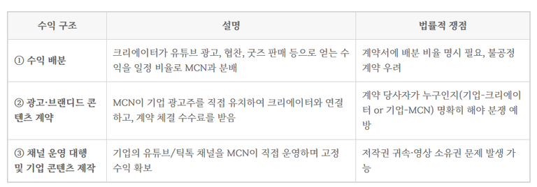 즉, MCN은 중개자이자 제작자의 역할을 동시에 수행하면서 수익을 창출합니다.