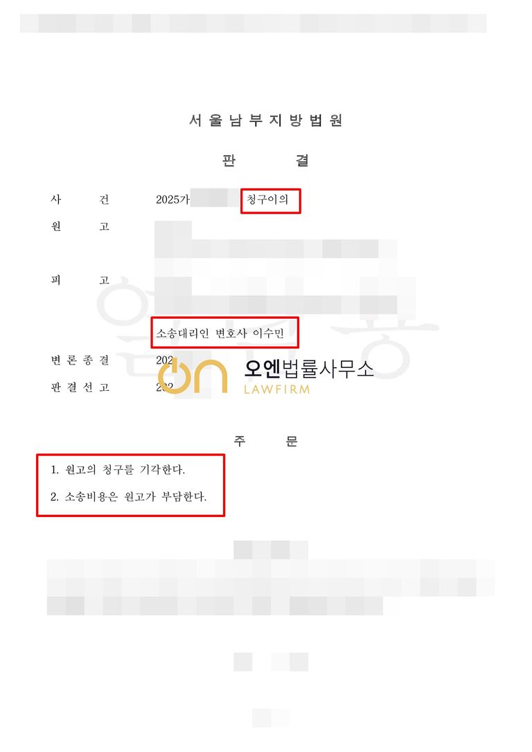 재판부는 담당 변호사의 주장을 받아들여 상대방의 청구를 기각하였습니다.