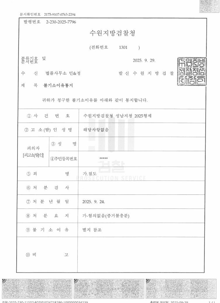 위 사안은 절도죄가 인정되어 검찰 송치된 이후 저에게 사건을 위임해주신 사안이었습니다. 의뢰인은 피해액이 소액이었지만 전과가 남을 수 있는 상황이었기 때문에 1차 목표는 무혐의, 2차 목표는 기소유예를 원하였습니다.