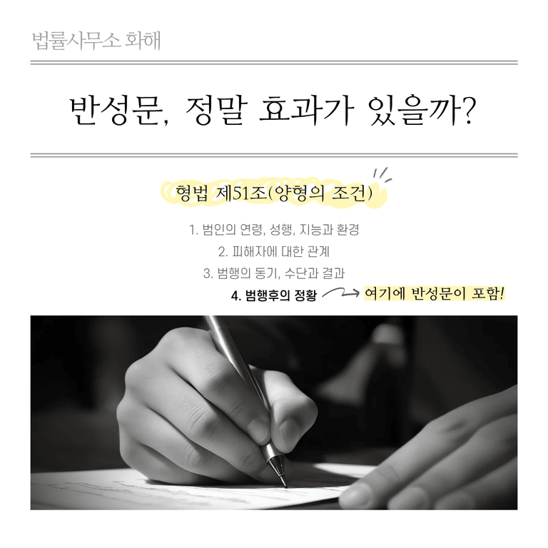 저희 법률사무소 화해의 전문 변호사들은 사건의 쟁점, 증거 관계, 검사의 주장, 변호 전략 등을 종합적으로 고려하여 무엇을 어느 선까지 인정하고 반성할지에 대한 구체적인 가이드를 제시해 드리고 있습니다. 반성문 한 장이 재판의 향방을 바꿀 수 있는 만큼, 독단적으로 작성하기보다는 법률 전문가의 조언을 받아 신중하게 작성하시기 바랍니다.