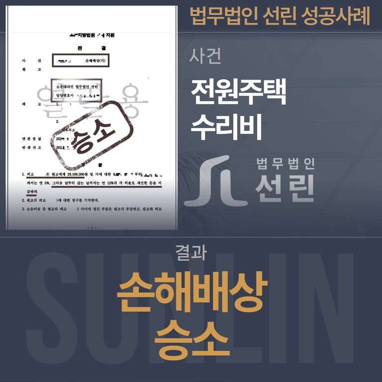 법무법인 선린의 신속한 대응으로 수리비 전액을 배상받는 결과를 얻었습니다.