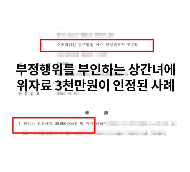 오늘은 부정행위 사실을 극구 부인하는 상간녀에 위자료소송을 제기하여 3천만원이 인정된 사례를 소개해드리겠습니다.