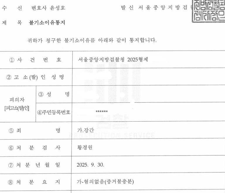 이에 다행히 검찰에서 최종적으로 혐의가 없다고 불기소하여 사건이 종결되었습니다.