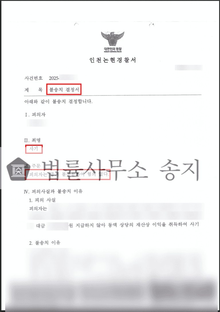 2. 법률사무소 송지의 조력 및 수사기관의 판단 : 불송치