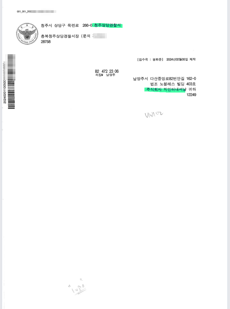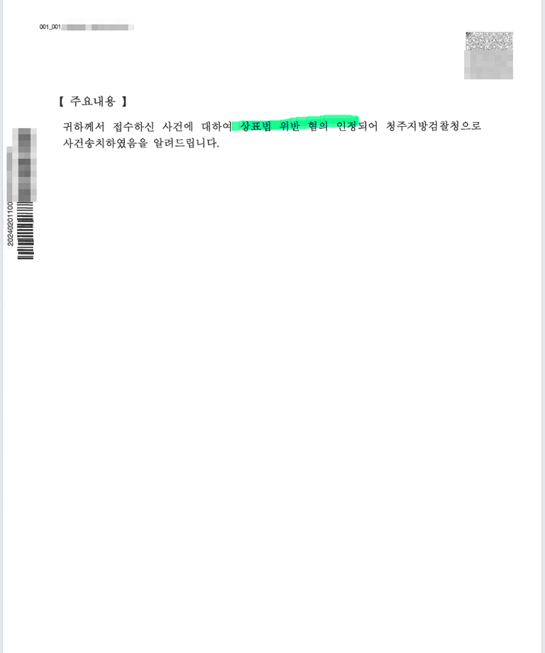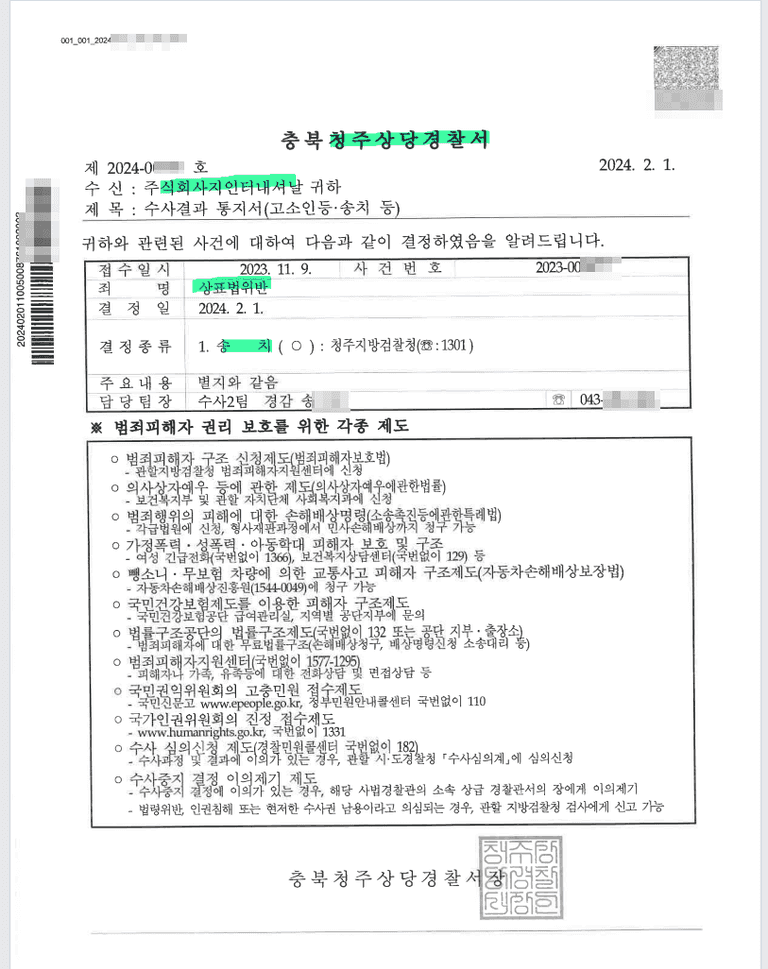 청주상당경찰서-짝퉁 상표법 위반 고소와 기소