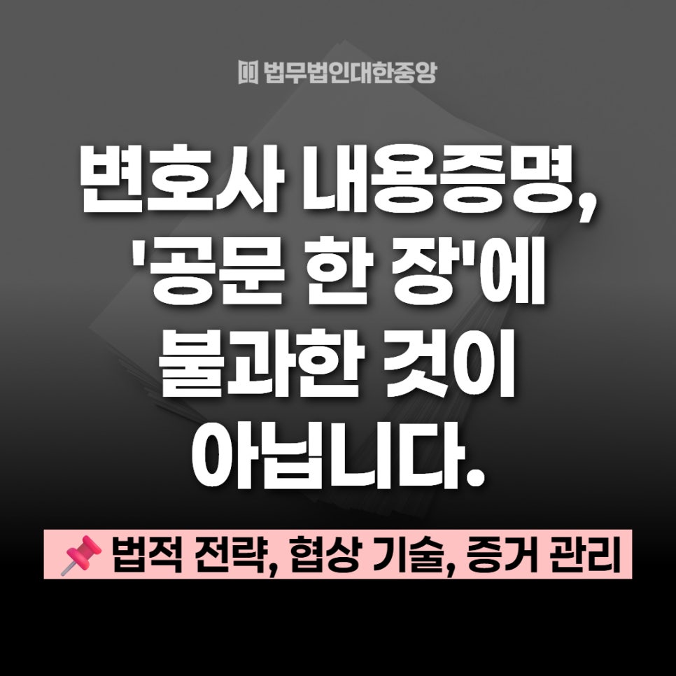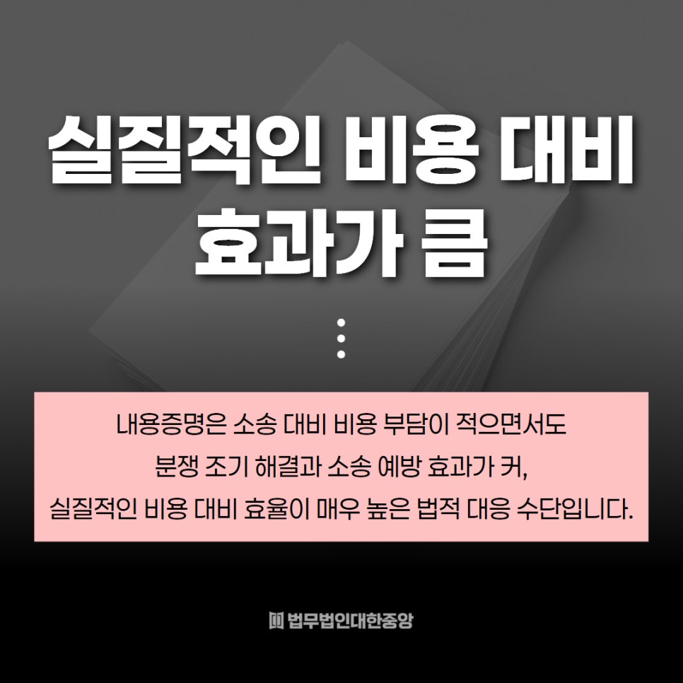 법무법인대한중앙은 가장 합리적인 비용으로 내용증명 작성, 발송 조력을 진행하고 있습니다.