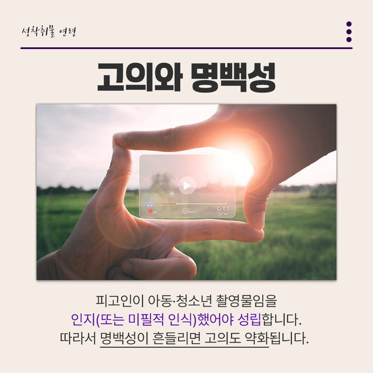 피고인이 아동·청소년 촬영물임을 인지(또는 미필적 인식)했어야 성립합니다.
