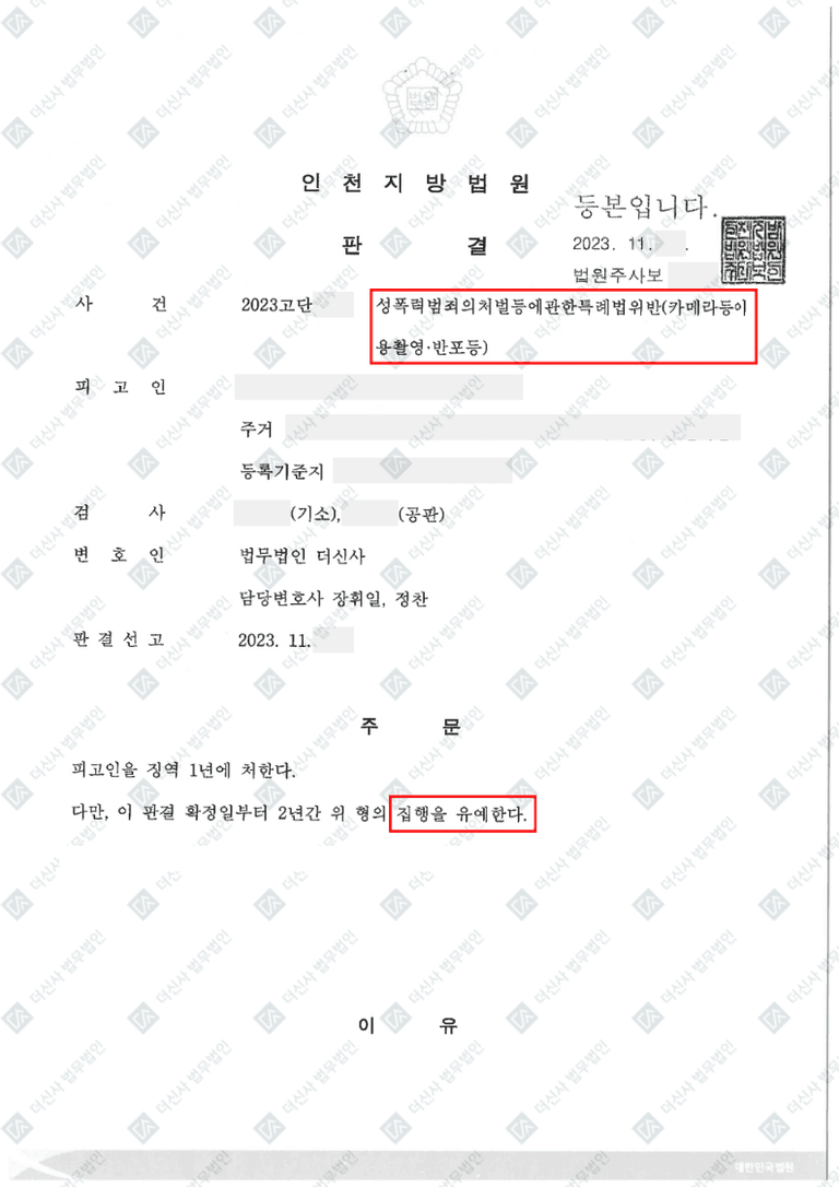 ※ 동종 전과가 있거나 촬영물이 대량일 경우, 실형 가능성도 높아집니다.