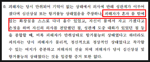 “설령 피해자가 당시 만취 상태로 항거불능이었다 하더라도,
