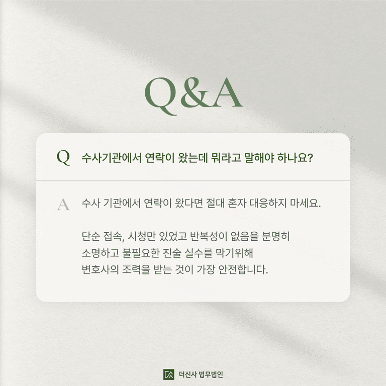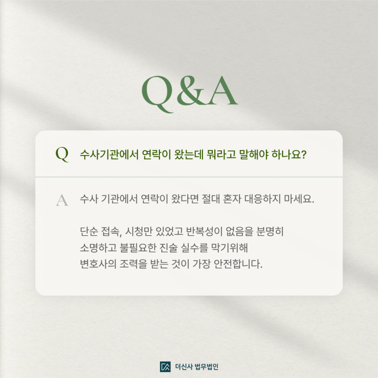 만약 수사기관에서 연락이 왔다면 절대 혼자 대응하지 마세요.
