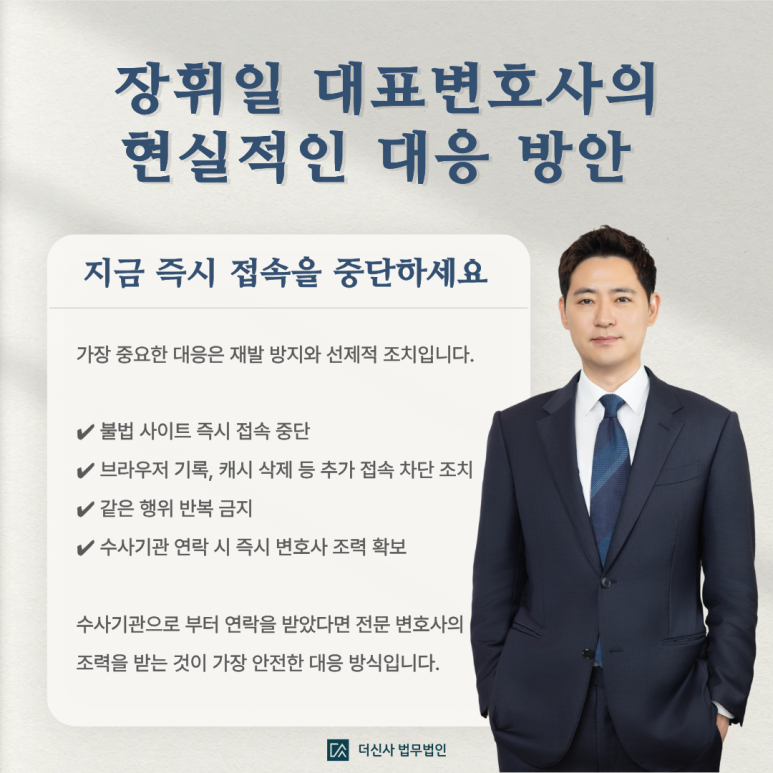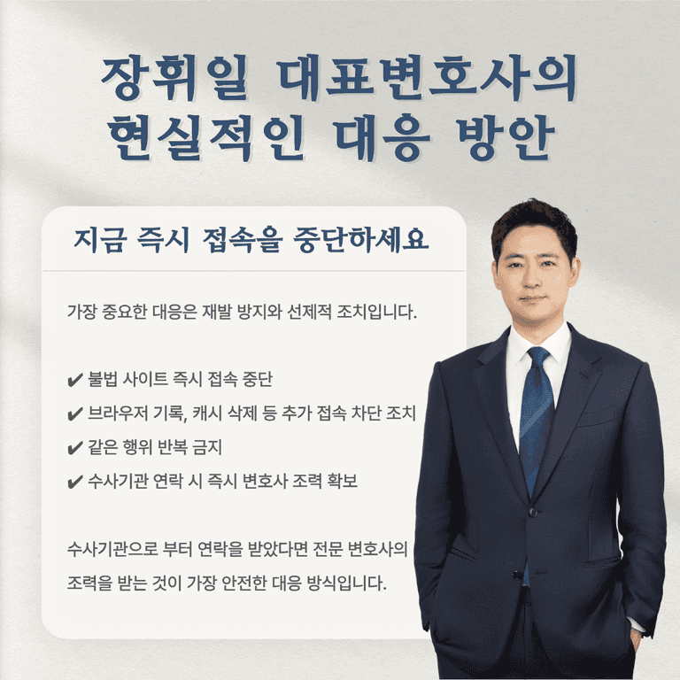 해당 사이트의 접속을 즉시 중단하고, 기록을 삭제한 뒤 동일 행위를 반복하지 않는 것이 가장 중요합니다.