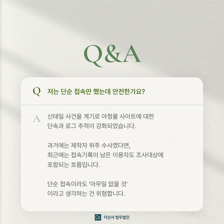 과거에는 제작자 위주 수사였다면, 최근에는 접속기록이 남은 이용자도 조사대상에 포함되는 흐름입니다.