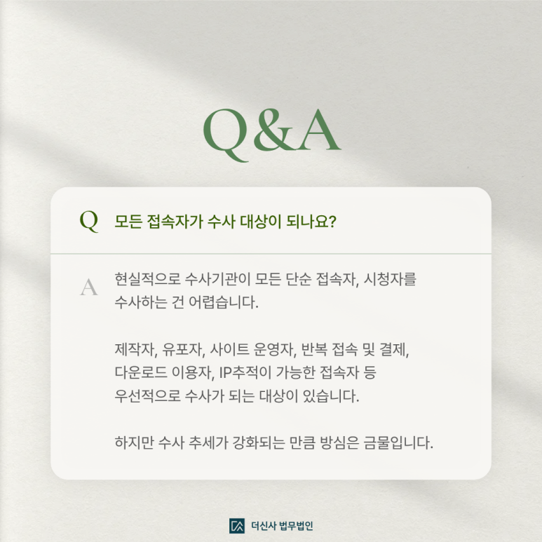 현실적으로 수사기관이 모든 단순 접속자, 시청자를 수사하는 건 어렵습니다.
