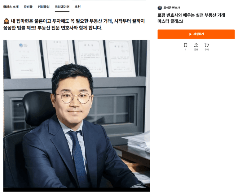 안녕하세요. 조석근 변호사님께서 이번에 클래스 101의 요청으로 CLASS101 플랫폼에서 부동산 강의를 새롭게 런칭했습니다. (왼쪽 상단 인기 영상)