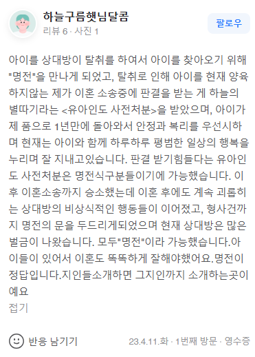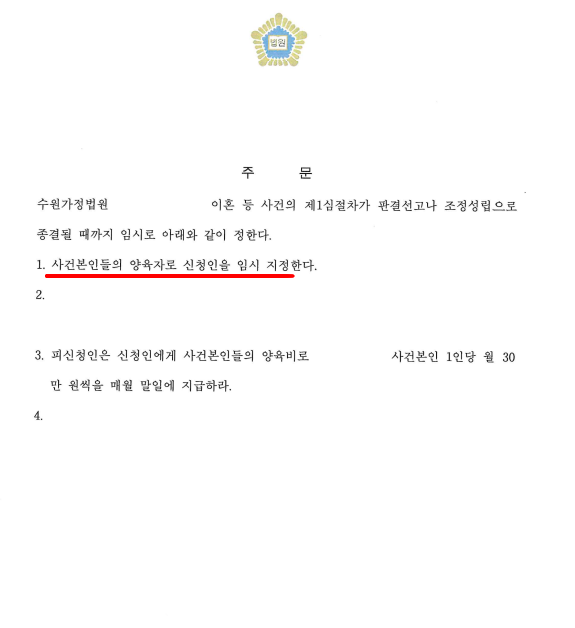 최종적으로 양육권 승소에까지 이를 수 있었던 사안입니다.