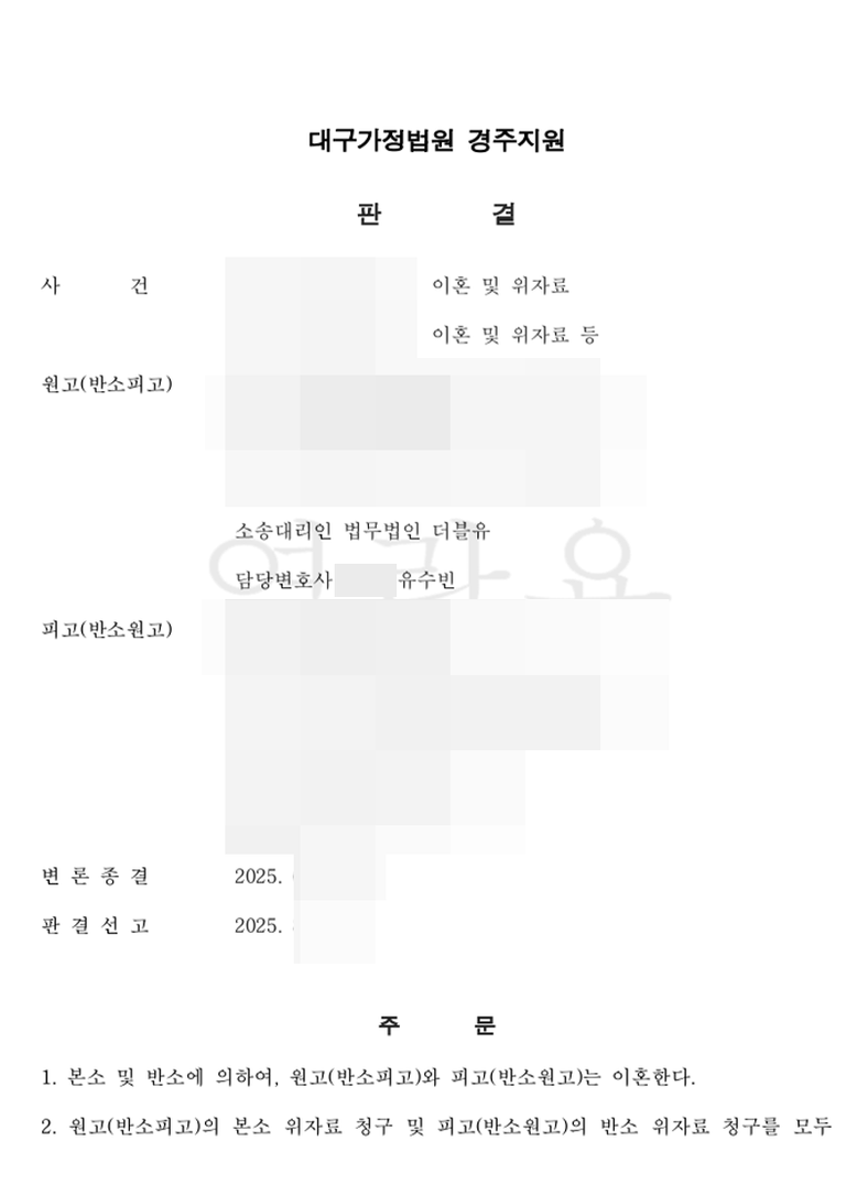 안녕하세요. 이혼전문변호사 유수빈입니다.