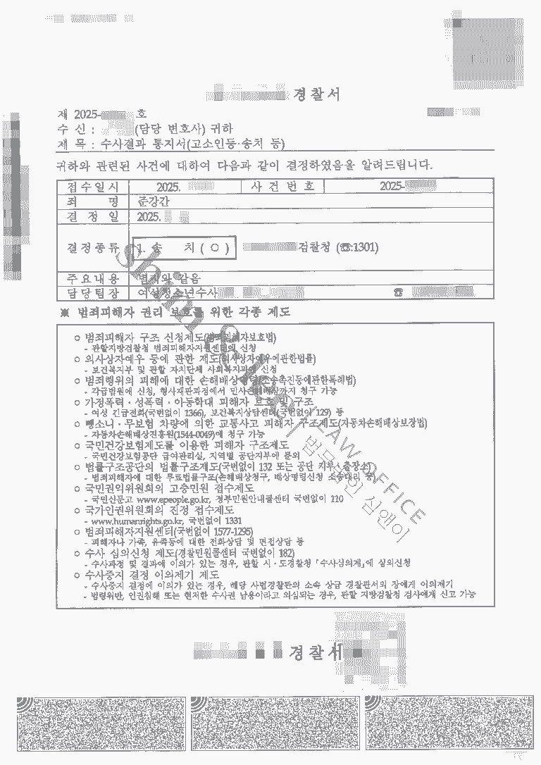 - 긴 수사 끝에 담당 수사관은 가해자의 준강간 혐의가 인정된다고 판단하여 사건을 검찰에 송치하였습니다. 심앤이의 주장대로 자발적인 성관계가 아니었다는 피해자 진술의 신빙성을 높게 판단하신 것입니다.