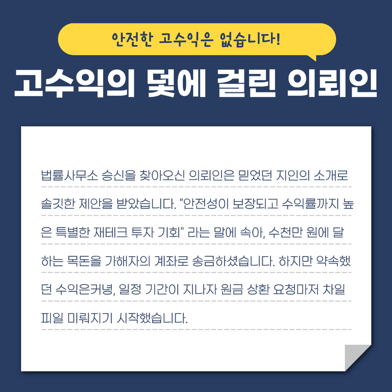 사건의 시작: “안전한 고수익”의 덫에 걸린 의뢰인
