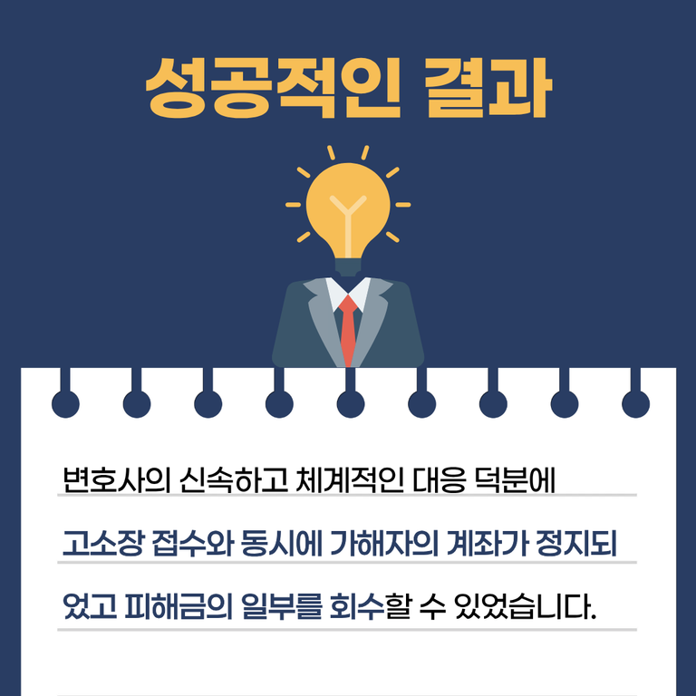 의뢰인은 그 잔액에 해당하는 피해금의 일부를 실제로 회수할 수 있었습니다.