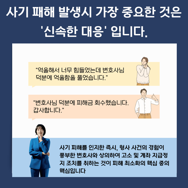교묘해지는 사기 수법에 맞서기 위해서는 전문적인 법률 조력이 필수적입니다.