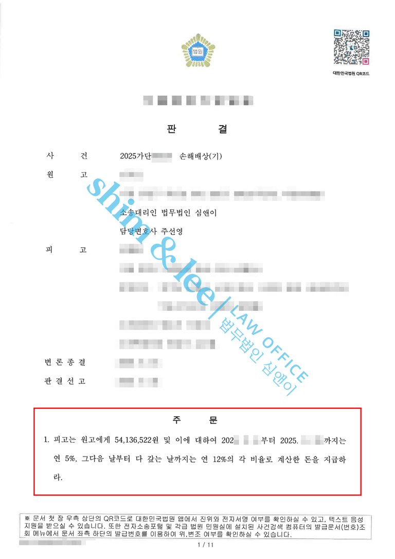 - 또한 원고가 해외에 거주하고 있는 점을 고려해 각 시점의 환율을 적용하여 실제 지출 금액을 세밀하게 계산하여 손해액 산정의 근거를 더욱 명확히 했습니다.