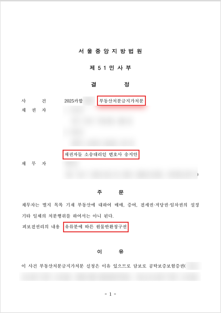 1. 부동산처분금지가처분을 위한 법률사무소 송지의 조력