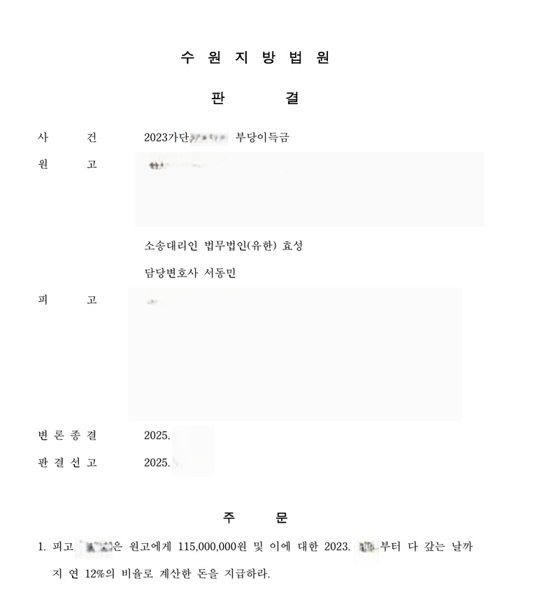 저는 즉각 입금 받은 자를 피고로 하여 민사소송 부당이득반환청구소송을 제기하였고 법원은 원고 승소 판결을 선고하여 의뢰인은 피해액을 반환받았습니다.
