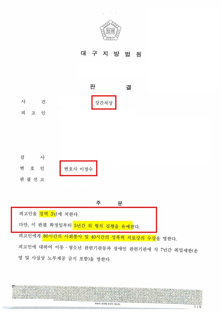 그 결과 징역 3년 집행유예 5년으로 선처 받을 수 있었습니다.