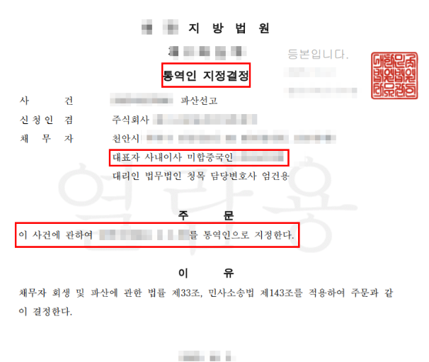 이 회사의 대표이사는 한국어 소통이 거의 불가했던바, 파산 준비 과정에서는 대표이사의 한국인 지인께 도움을 요청해서 여러 자료를 준비할 수 있었다.