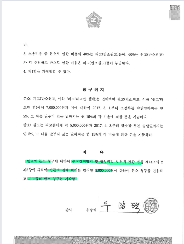 부경법 위반으로 300만원 배상 인정받은 사례