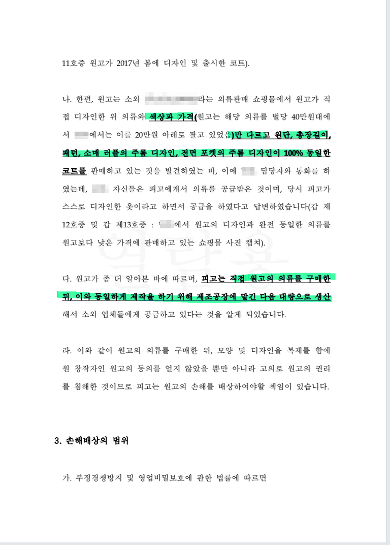 피고는 이 의류를 구매한 후 색상과 가격만 바꿔 의류소매상들에게 공급하여 부당한 이익을 취하여 온 자입니다.
