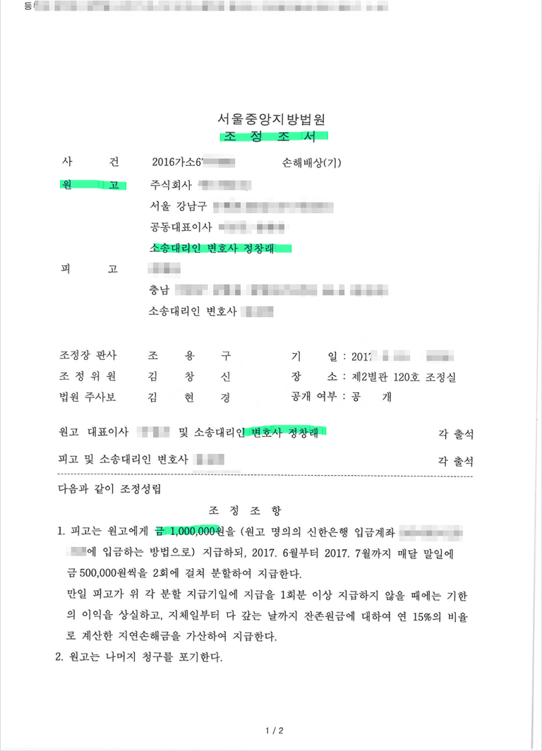 강남 한우구이 전문점에서 매니저역할을 하던 직원이 무단결근을 하여 고용주가 피해를 입은 사례에서 손해배상청구를 한 다음 조정에 이른 사례