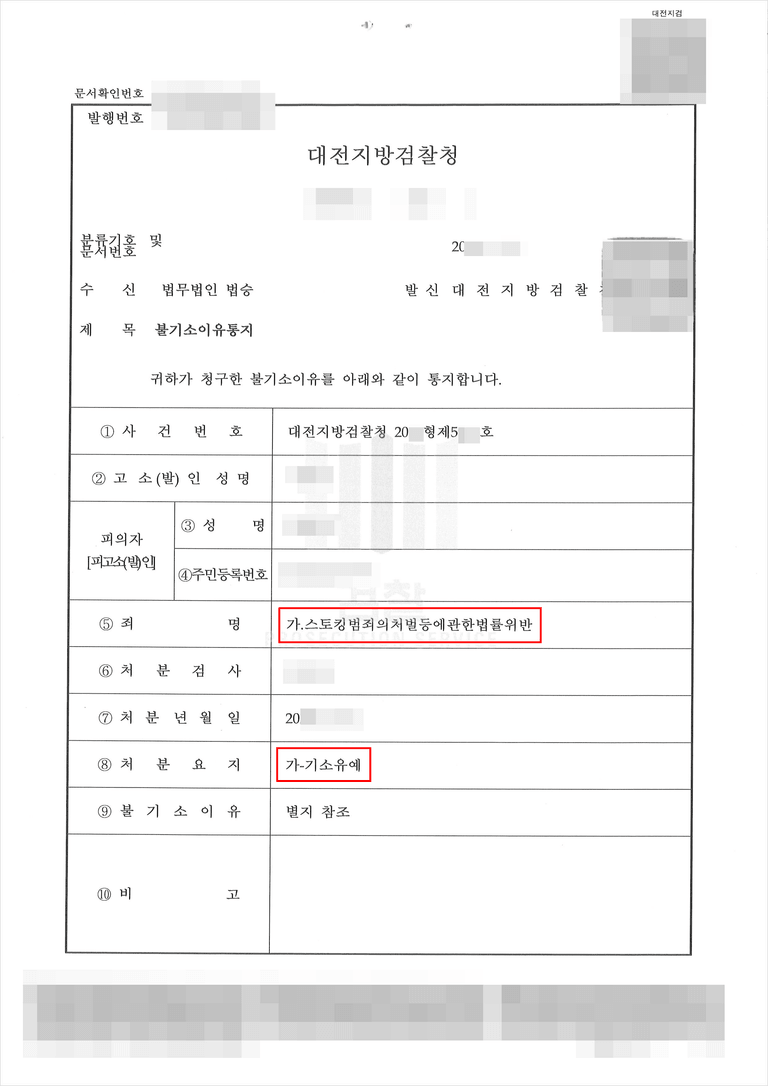그 결과 검찰은 피의자의 범행 경위에 참작할 사정이 있고, 피해자가 피의자에 대한 처벌을 원하지 않는 점 등을 이유로 피의자에게 기소유예 처분을 하였습니다.