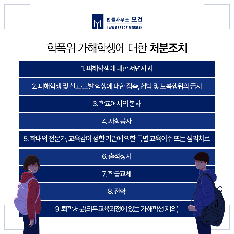 반면 학폭위(학교폭력대책심의위원회)가 개최되면 심의위원들에 의해 가해학생에게 1호부터 9호까지의 처분이 내려지고, 이는 모두 생활기록부에 기록되어 향후 대입 등 장래에도 큰 불이익으로 이어집니다.
