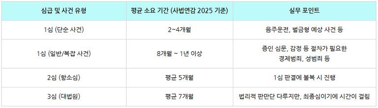 3. 법원 재판 단계 (1심 기준 평균 7.2개월)