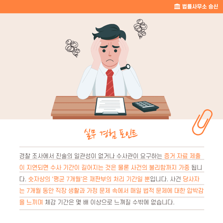 수사 기간이 길어지는 것은 물론 사건의 불리함까지 가중됩니다.