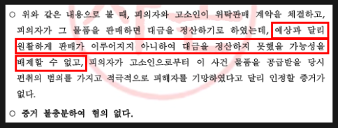그러나 고소인은 “의뢰인이 물품을 납품받고 대금을 지급하지 않았다”며 사기죄로 고소하였고,