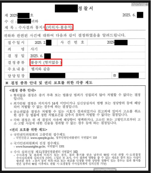 그 결과, 경찰은 불송치 결정을 내렸습니다.