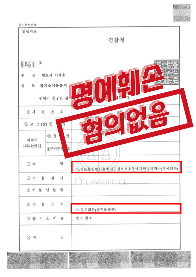 [성공사례] 사이버 명예훼손 (정보통신망법 위반) - 혐의 없음